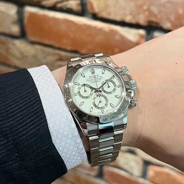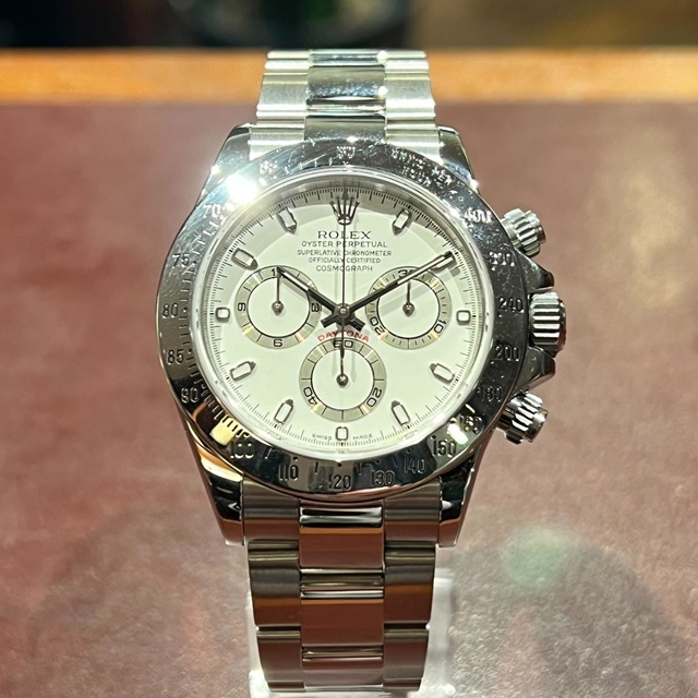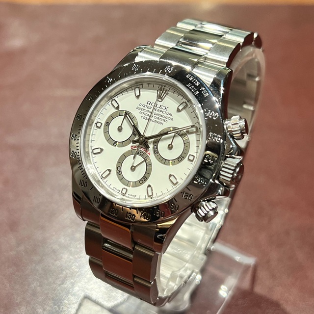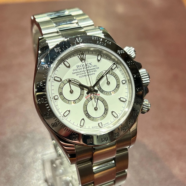 本日はロレックスを代表する人気モデルと言えるデイトナの旧型【Ref.116520 ホワイト】を