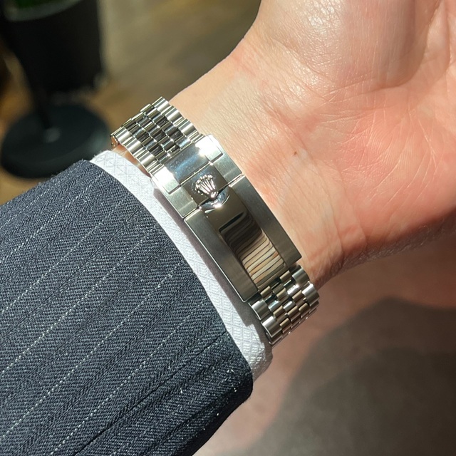 こちらはベゼルの色が濃い2型ベゼルと見られ、ジュビリーブレスと相まって高級感が