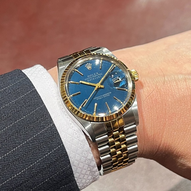 この世代のデイトジャストはベゼルカラーと同系色のダイヤルが多く見られる中で